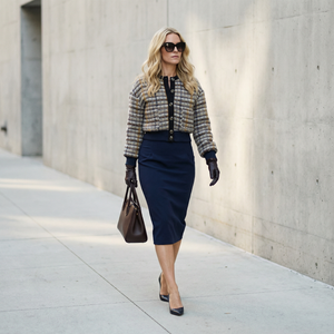 Designed for long workdays and warmer interiors, the lighter-weight suiting maintains structure without heaviness—making this skirt an ideal foundation for tailored sets and capsule wardrobes.