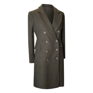 Timeless, powerful, and meticulously tailored. This military-inspired midi coat is crafted from a luxe blend of wool and cashmere, offering warmth with a refined softness. The structured silhouette is accented by a bold eight-button front, sharp lapels, and a streamlined fit that commands attention.
