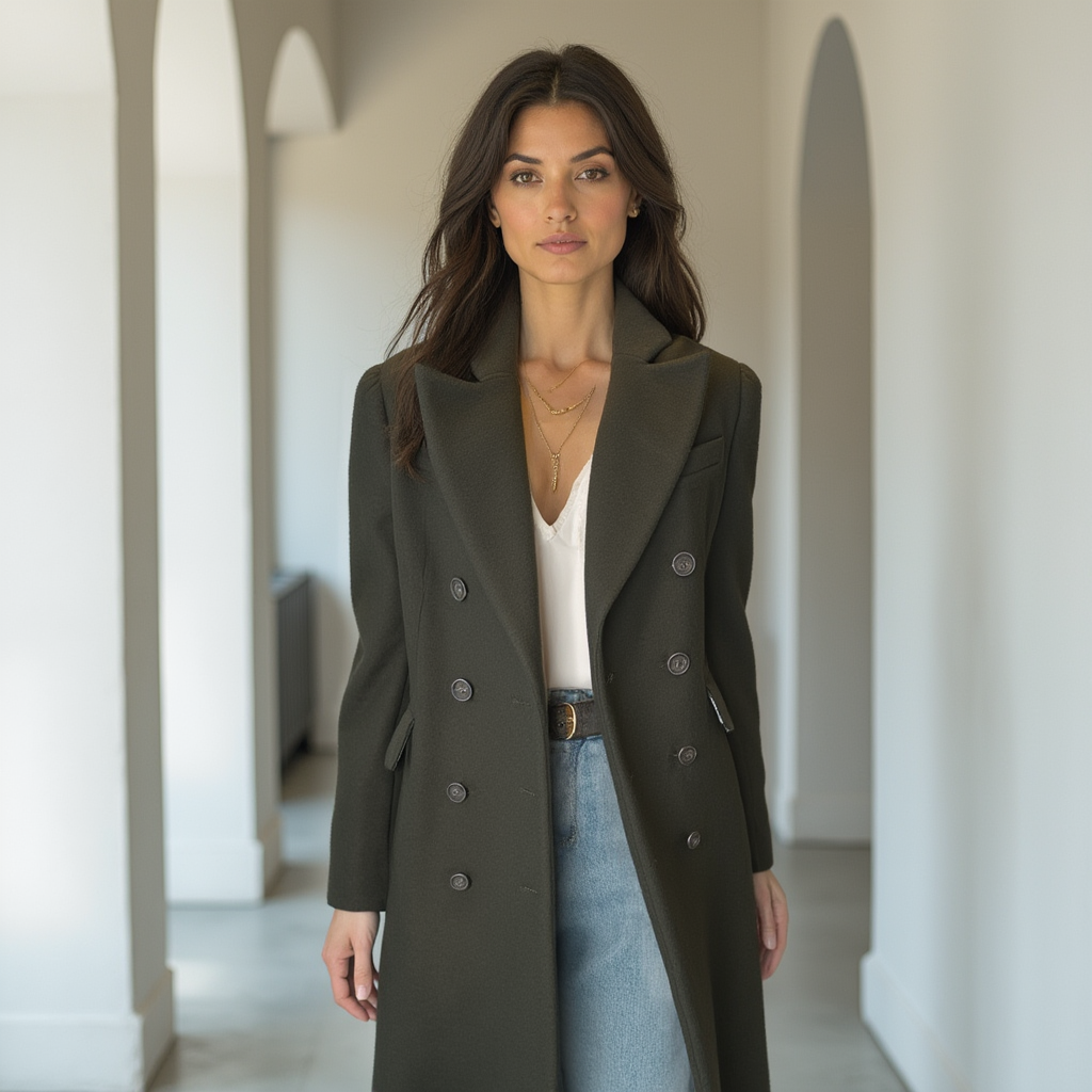 Designed for both function and sophistication, this coat is a statement of strength—perfect for layering over tailored ensembles or effortlessly elevating everyday looks.