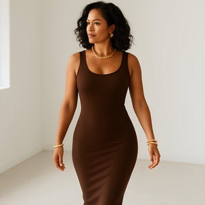 Crafted from premium double-layered ITY stretch knit, the FORME dress is designed to contour, smooth, and move with you. Each piece features two full layers in the front and two in the back—creating a four-layer seamless structure that delivers a sleek silhouette with lasting comfort and hold.