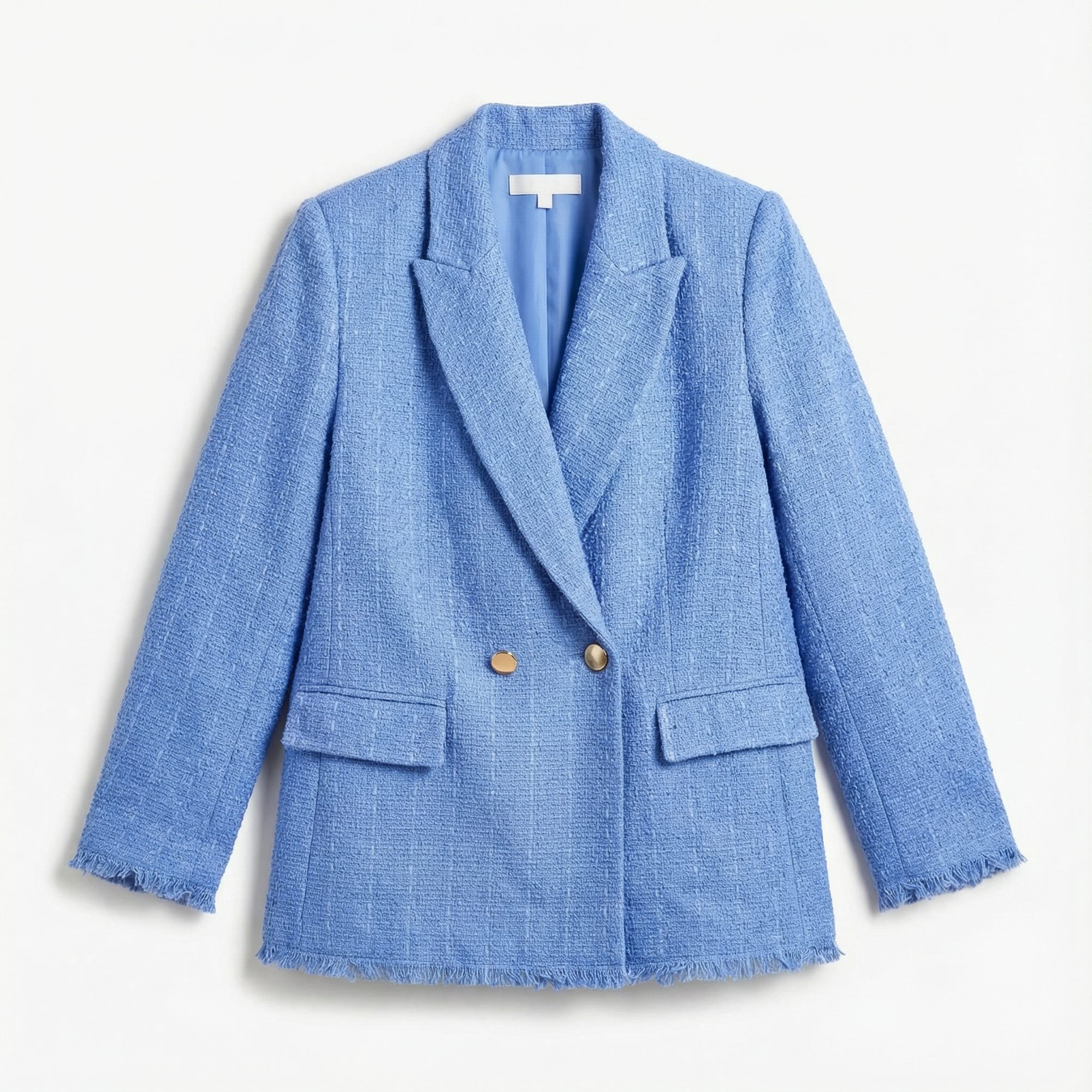 Woven oversized box-cut blazer designed to bring colour, movement, and personality into a modern wardrobe. Crafted from 100% cotton, the fabric offers structure with an expressive, tactile feel, while fringe trim detailing adds energy and subtle glamour.