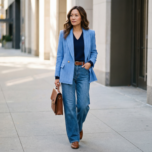 Finished with a double-breasted closure, front flap pockets, and buttoned sleeves, this jacket pairs effortlessly with grey, black, or navy trousers, and works just as well with all shades of denim. Ideal for events, evenings out, or moments that call for impact, it’s a confident layer that elevates even the simplest foundation.