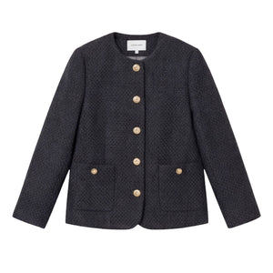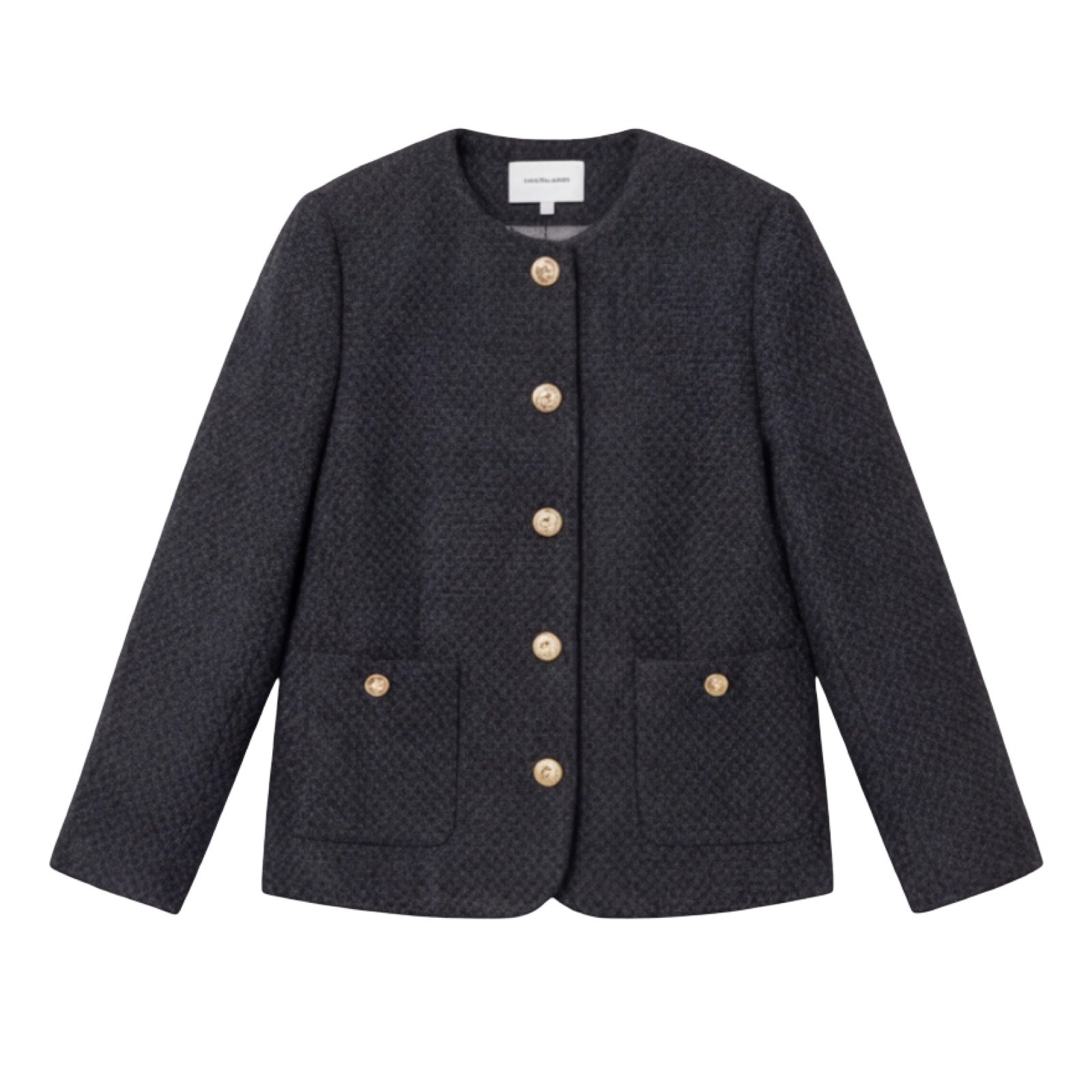 The Vera Jacket is a polished alternative to casual sweaters — offering the same ease with a more refined finish. Crafted in a textured knit fabric and finished with an elegant gold button closure, it brings quiet structure and upgraded grace to everyday dressing.