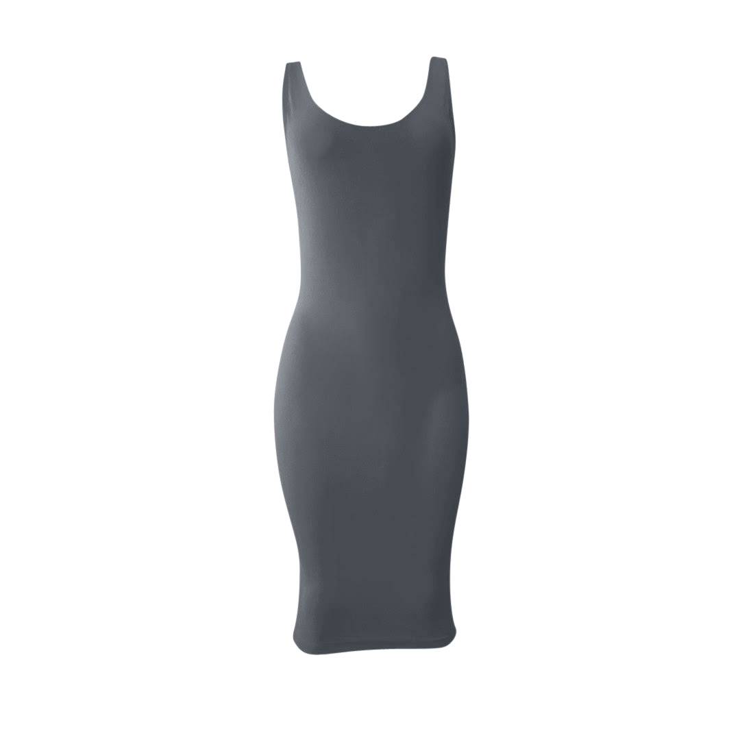 Cool to the touch and wrinkle-resistant, ITY offers a refined drape and body-hugging fit that’s ideal for warm evenings, rooftop events, and elevated daytime dressing. With its clean tank neckline and below-the-knee hem, FORME is understated but unforgettable.
